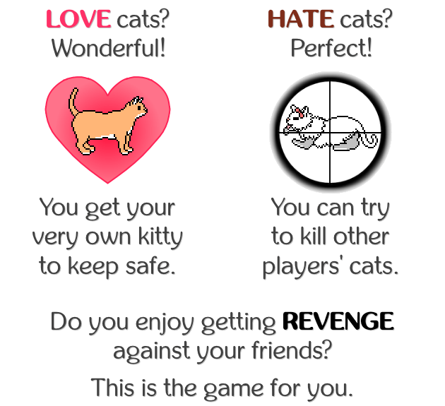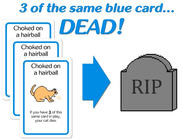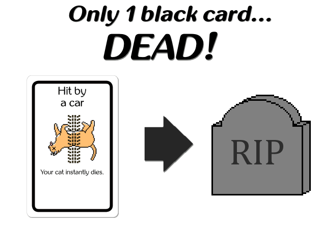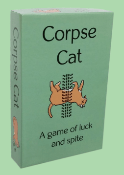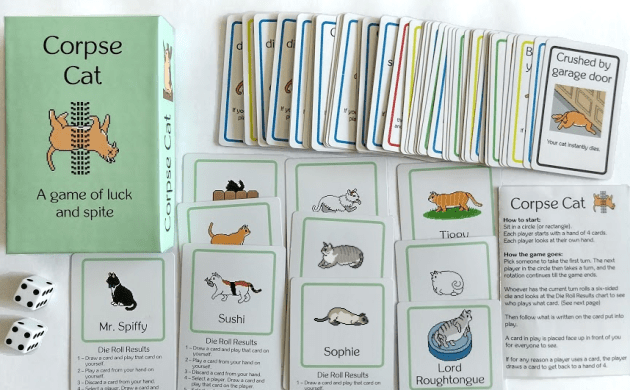 Corpse Cat is a simple and silly card game where you try to keep your cat alive while killing off other players’ cats. If your cat dies, you lose. BUT, if you lose, you continue to play the game and try to spite those who killed your cat.